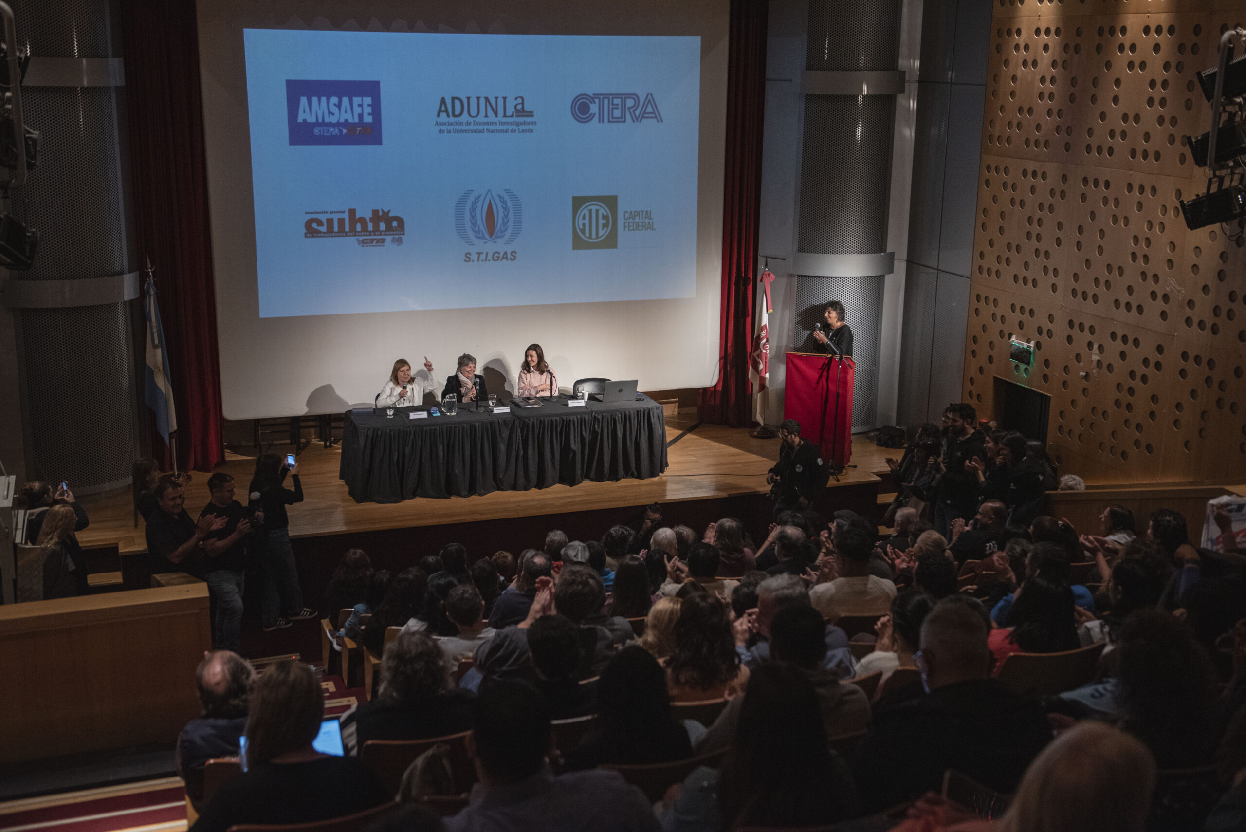 La inauguración estuvo a cargo de la vicerrectora de UNLa Georgina Hernández; la directora del Departamento de Salud Comunitaria Tamara Ferrero y la coordinadora del Espacio Intersindical Lilian Capone.