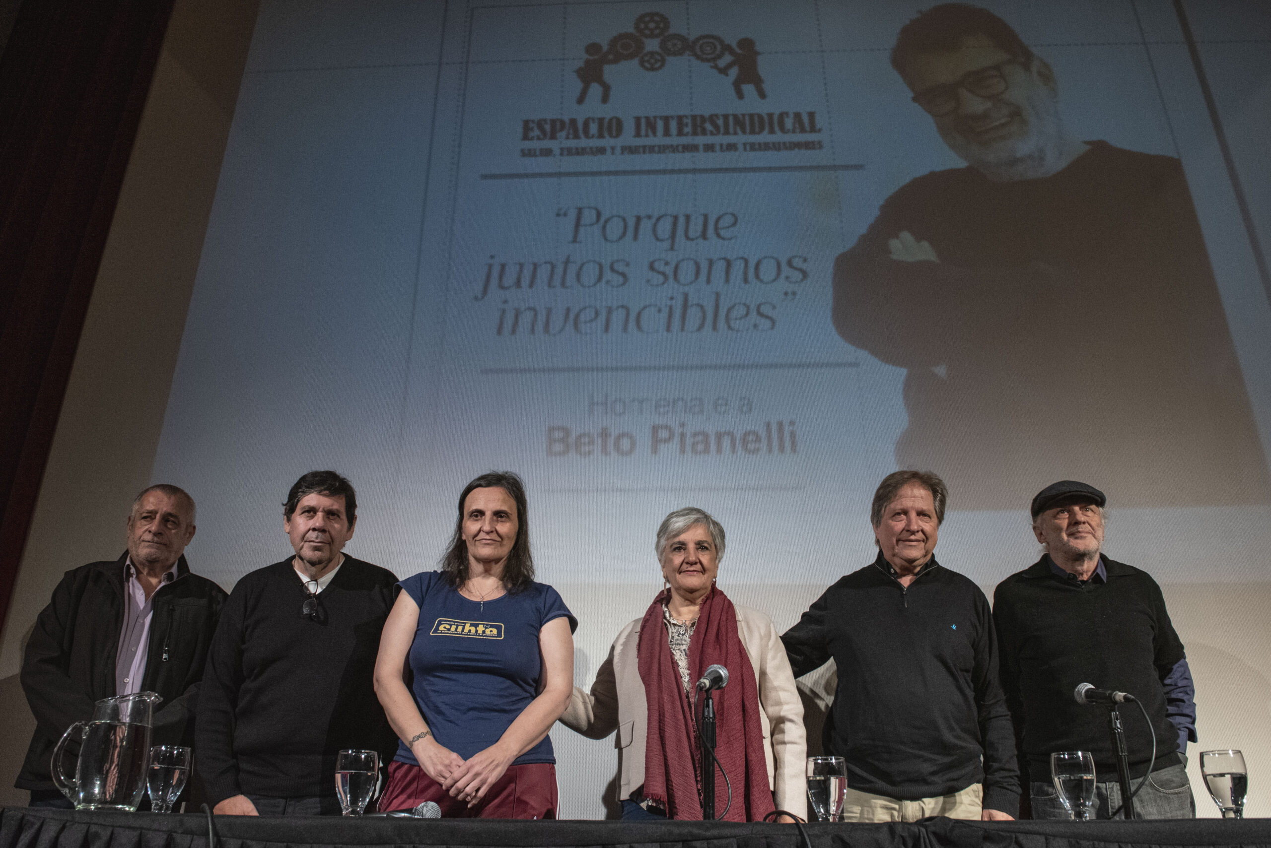 Luego de que las y los titulares sindicales disertaran, las y los presentes votaron por unanimidad denominar al Espacio Intersindical Roberto “Beto” Pianelli.
