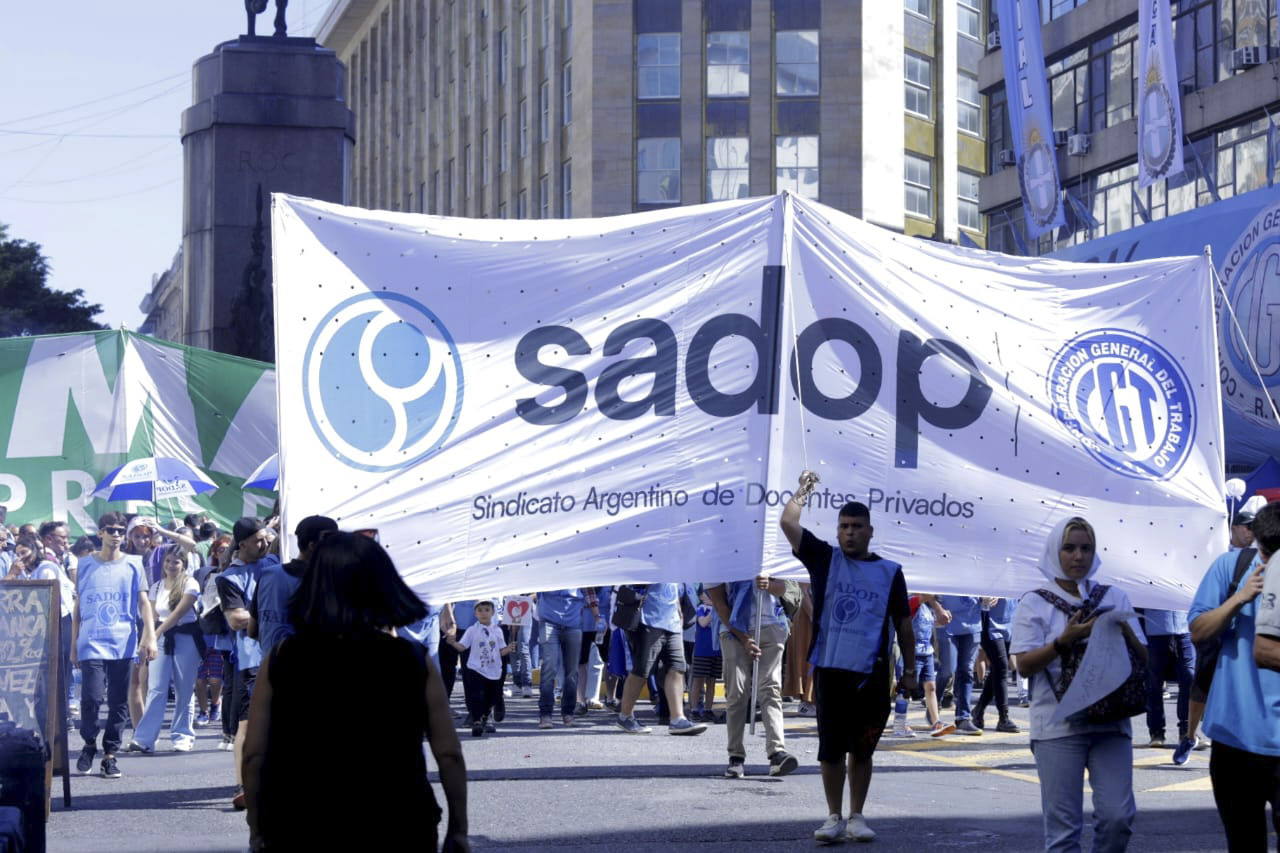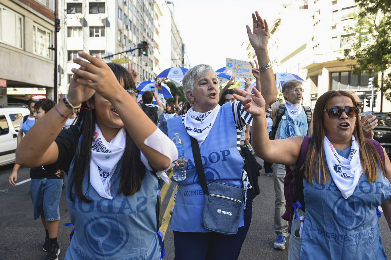 Las y los docentes de gestión privada marcharon para sostener que la única manera de educar es con estos valores como pilares fundamentales de la democracia. La Secretaria general de Sadop, Marina Jaureguiberry, impulsó a reflexionar sobre el sentido actual de las consignas históricas como “memoria, verdad y justicia” y a renovar desde las aulas el compromiso con el “Nunca Más”.