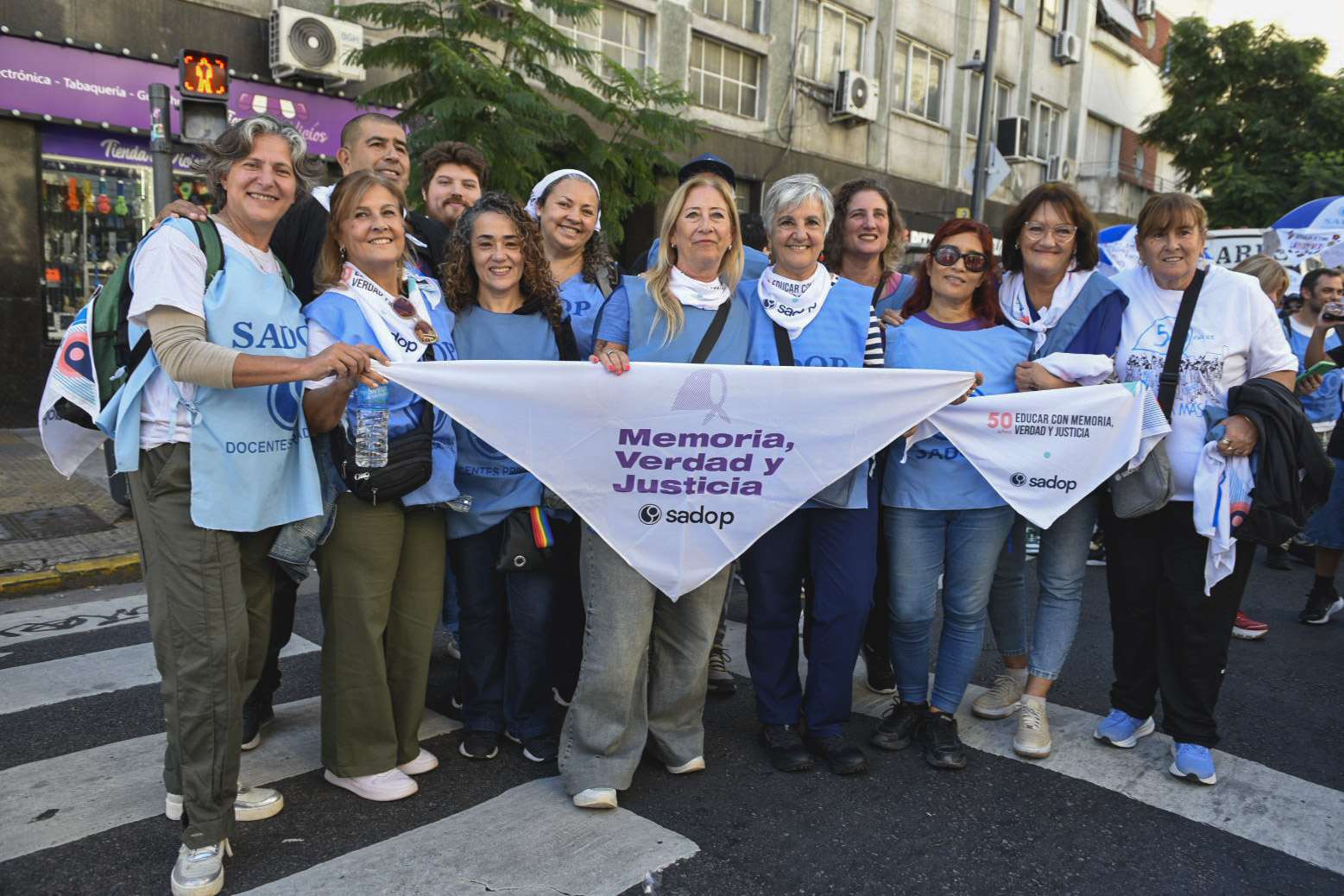 En el marco de un nuevo 24 de marzo, a 50 años del Golpe cívico-militar, Sadop participó activamente de la movilización a Plaza de Mayo junto a la CGT y organismos de Derechos Humanos, para reafirmar el compromiso con la defensa de la Memoria, la Verdad y la Justicia.